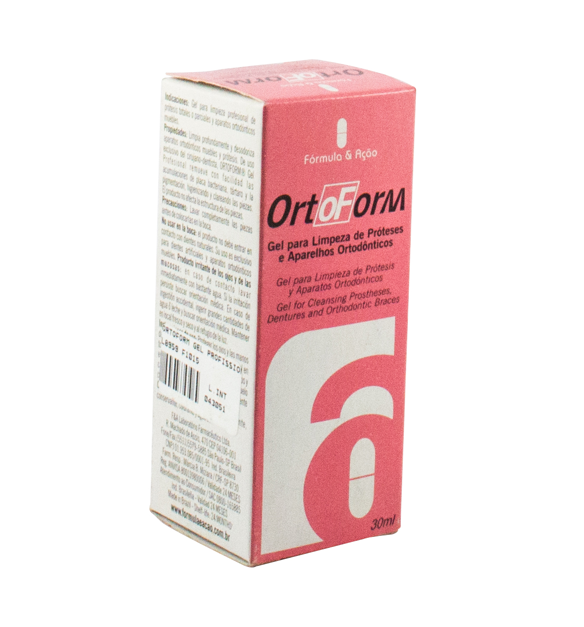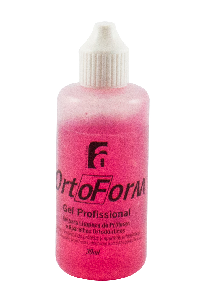Gel para limpeza profissional de próteses totais ou parciais e aparelhos ortodônticos móveis. Limpa profundamente e desodoriza aparelhos ortodônticos móveis e próteses. De uso exclusivo do cirurgião-dentista, ORTOFORM® Gel Profissional remove com facilidade os acúmulos de placa bacteriana, tártaro e a pigmentação, higienizando e clareando as peças.O produto não afeta a estrutura das peças.